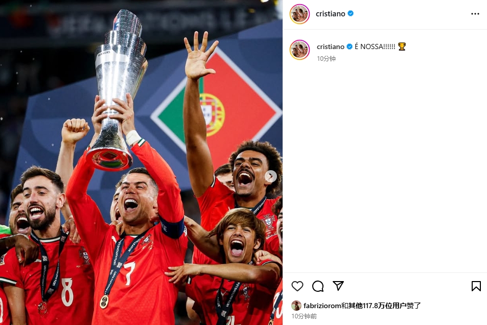十分钟不到100多万点赞!C罗社媒发文:🏆是我们的!!!!!