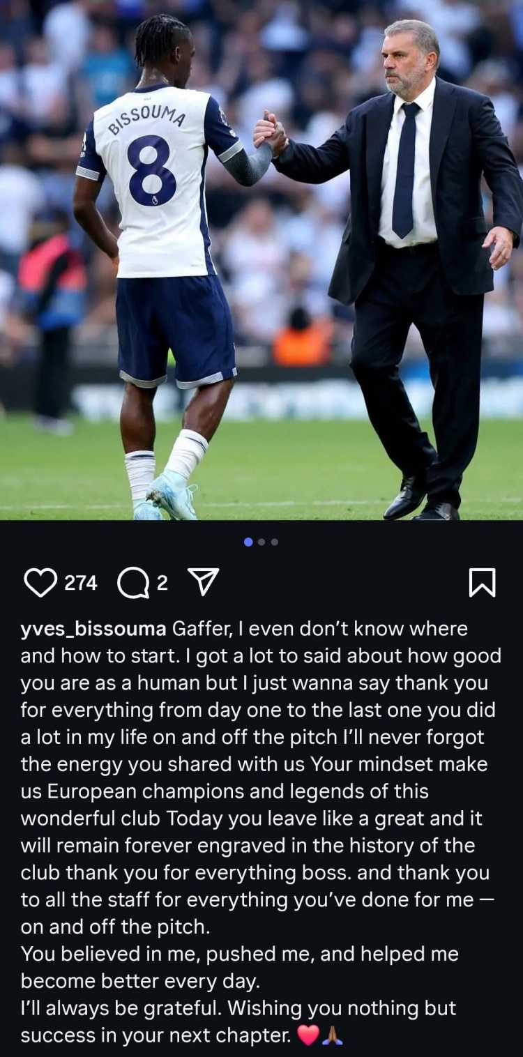 6月9日讯 热刺中场比苏马社媒发文,告别离任的主帅波斯特科格鲁。比苏马社媒晒出与波斯特科格鲁的合照,写道:“教练,我甚至...