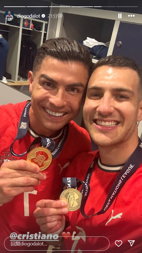 达洛特社媒上传与C罗合影,两人晒出欧国联奖牌&笑容灿烂