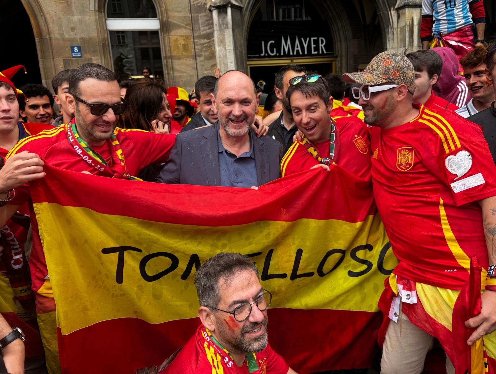 西班牙欧国联决赛对阵葡萄牙,足协主席赛前与球迷载歌载舞