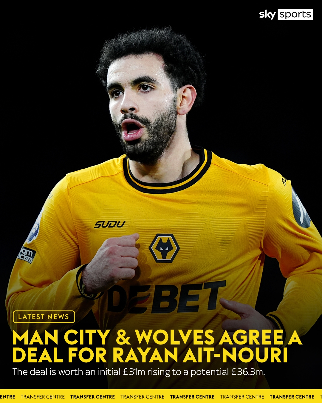 06月08日讯 据天空体育消息,曼城签下艾特-努里的转会费最高可达3630万英镑。据悉,曼城和狼队已经就左后卫艾特-努里...