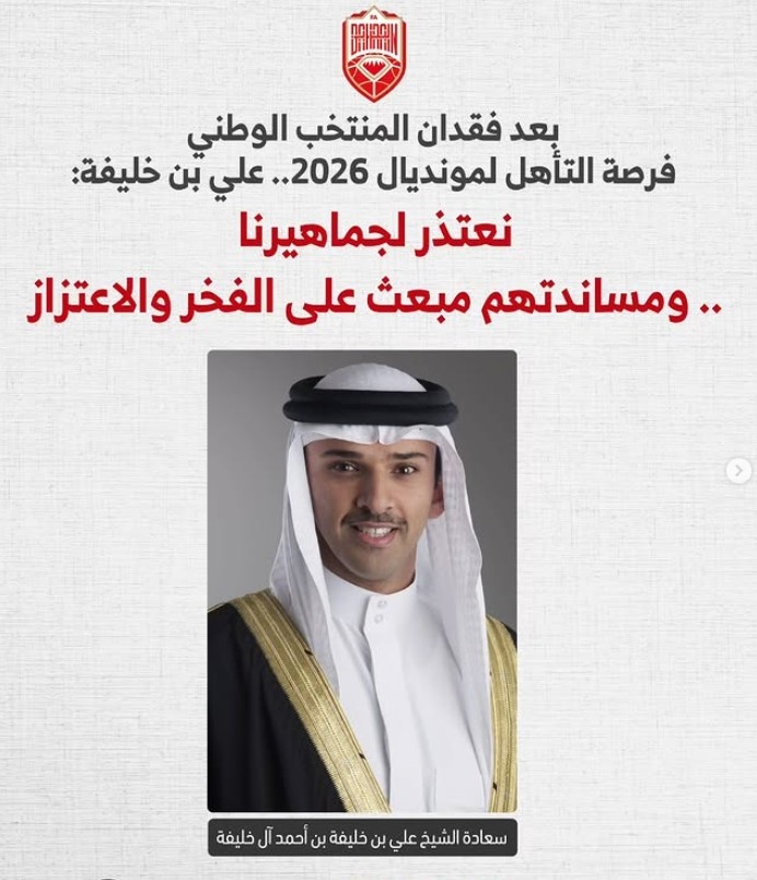 巴林足协主席致歉世预赛出局 力挺球队:潜力无限!