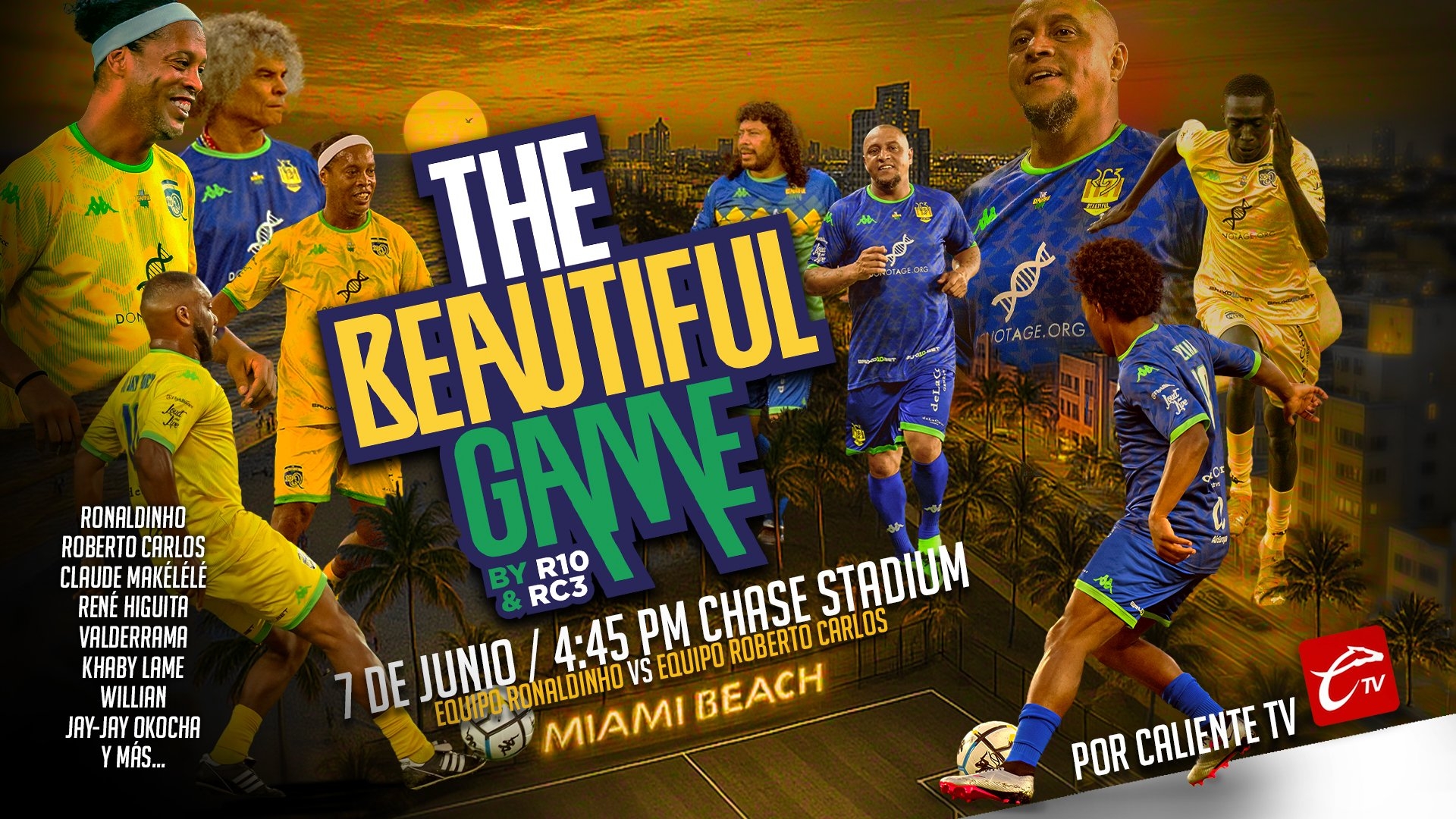 06月08日讯 今日,一场名人赛在迈阿密国际主场进行,小罗和卡洛斯各自带队出战。梅西保镖亚辛-切科受邀参加这场比赛,45...