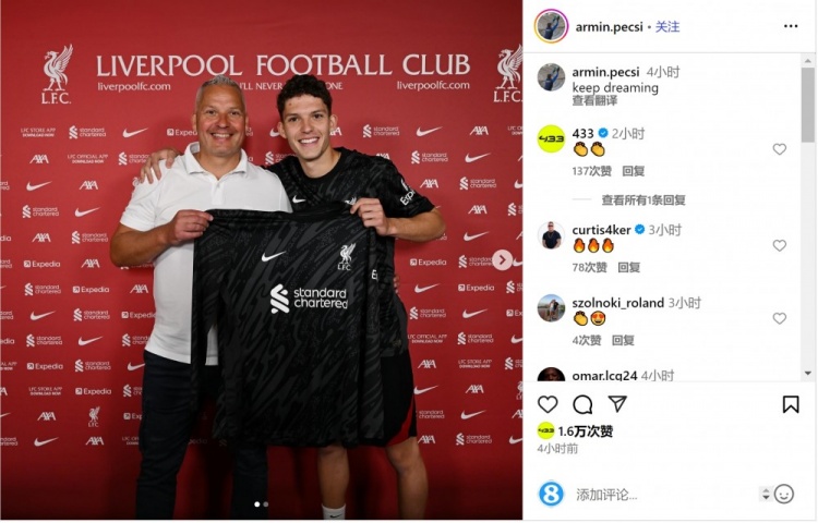 6月8日讯 利物浦门将新援阿尔明-佩奇更新社媒动态,晒出儿时身穿利物浦球衣的照片。利物浦官方宣布签下匈牙利20岁门将阿尔...