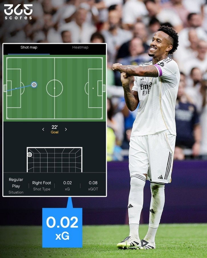 9月20日讯 在本轮西甲皇马对阵西班牙人的比赛中,米利唐打进精彩世界波。据统计,米利唐的这脚远射的预期进球只有0.02。...