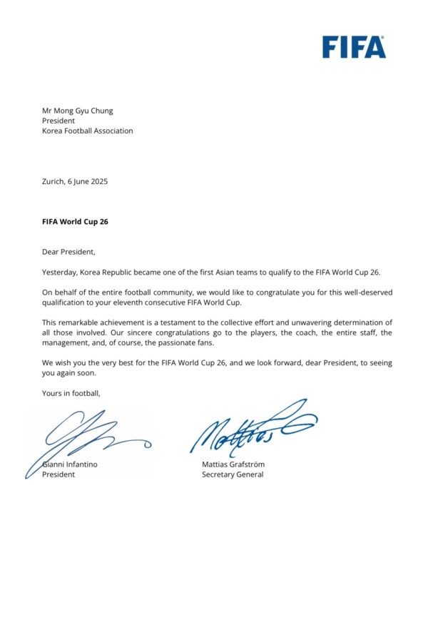 FIFA祝贺韩国连续第11届晋级世界杯:实至名归,了不起的成就