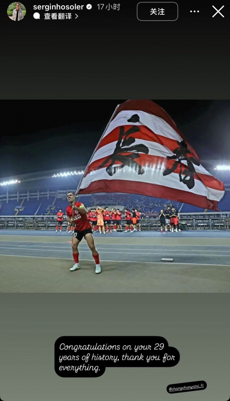 6月7日讯 昨日是长春亚泰足球俱乐部29岁生日。曾效力于长春亚泰的塞尔吉尼奥于昨晚更新社媒,向老东家送上生日祝福。塞尔吉...