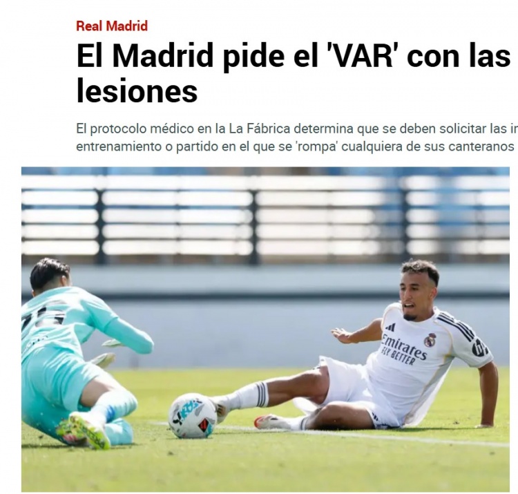 马卡:自家青训在U20集训受伤,皇马要求西足协提供受伤时的录像