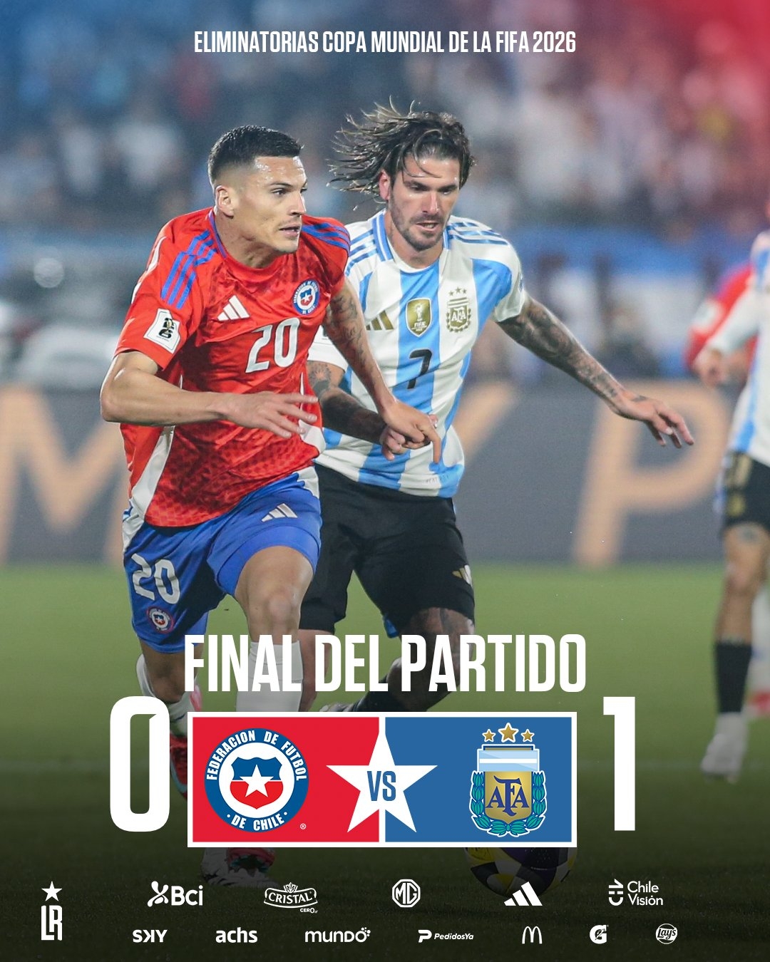 06月06日讯 南美世预赛第15轮,智利不敌阿根廷,已提前确定无缘直通2026美加墨世界杯。在还剩最后3轮比赛的情况下,...