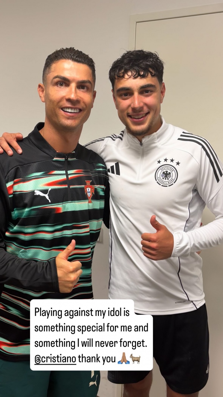 6月5日讯 今天凌晨,德国在欧国联半决赛1-2不敌葡萄牙遭淘汰,德国国脚帕夫洛维奇得到了与C罗合影的机会。帕夫洛维奇在社...