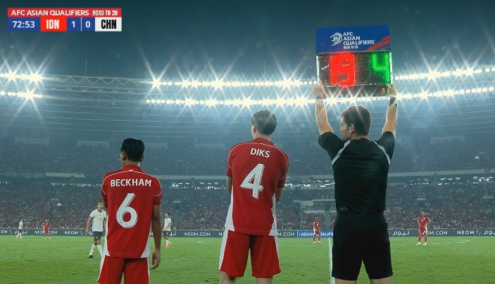 上贝克汉姆是吧!印尼第72分钟换上球员“贝克汉姆”和迪克斯