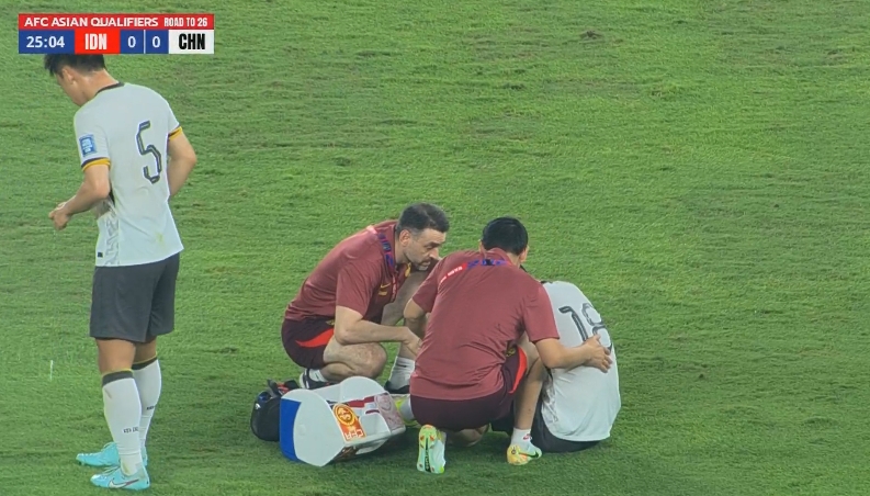 队医进场!韩鹏飞第25分钟受伤,简单治疗后能够继续坚持