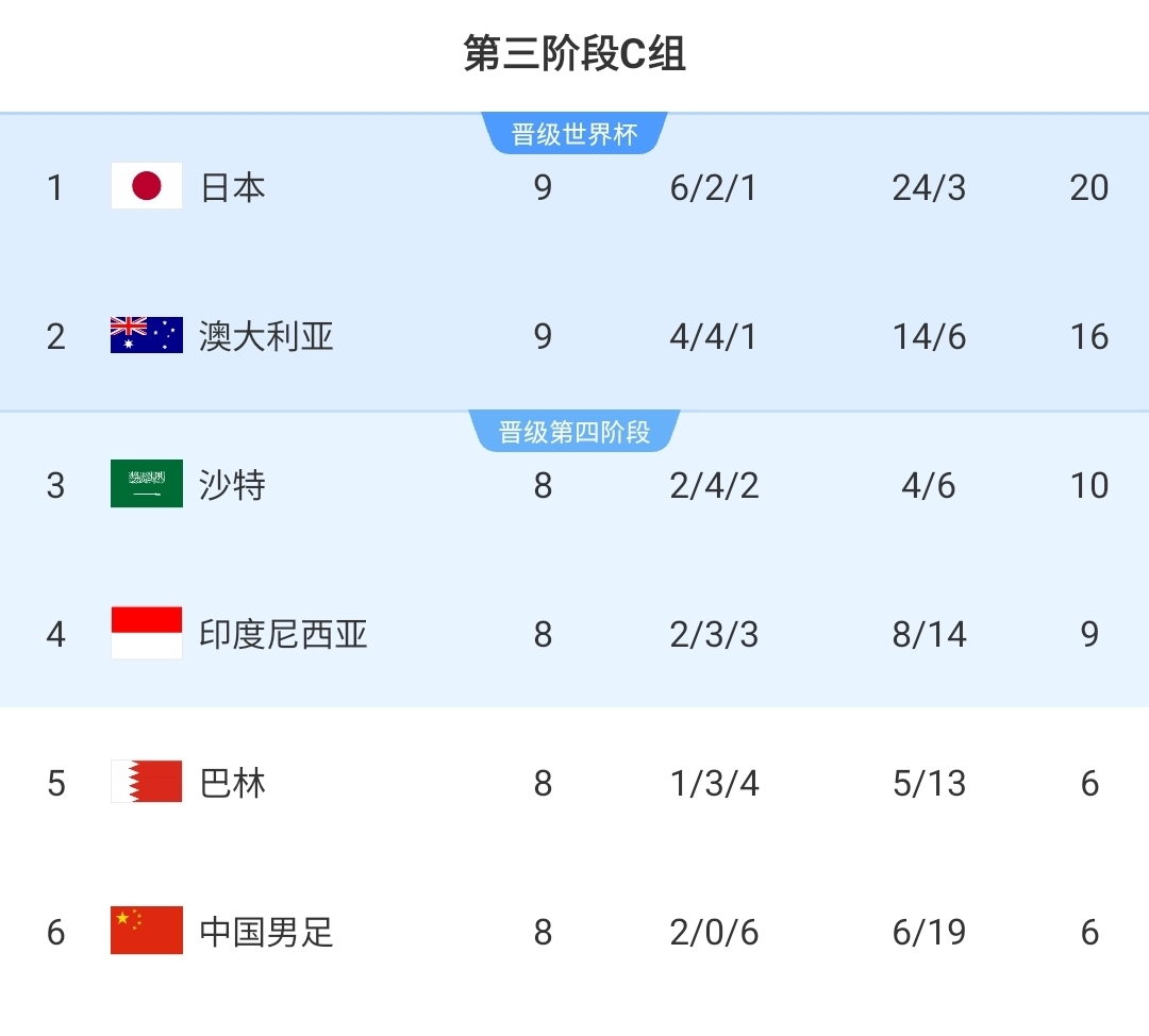 国足同组出线形势:澳大利亚领先6分基本出线,印尼提前无缘直通