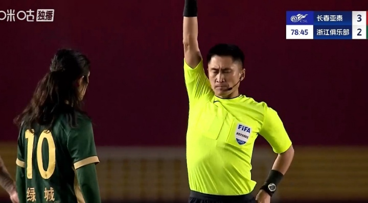 09月20日讯 亚泰vs浙江比赛第79分钟,李提香不满判罚贴脸抗议马宁,连吃两黄被罚下,浙江剩9人应战!...