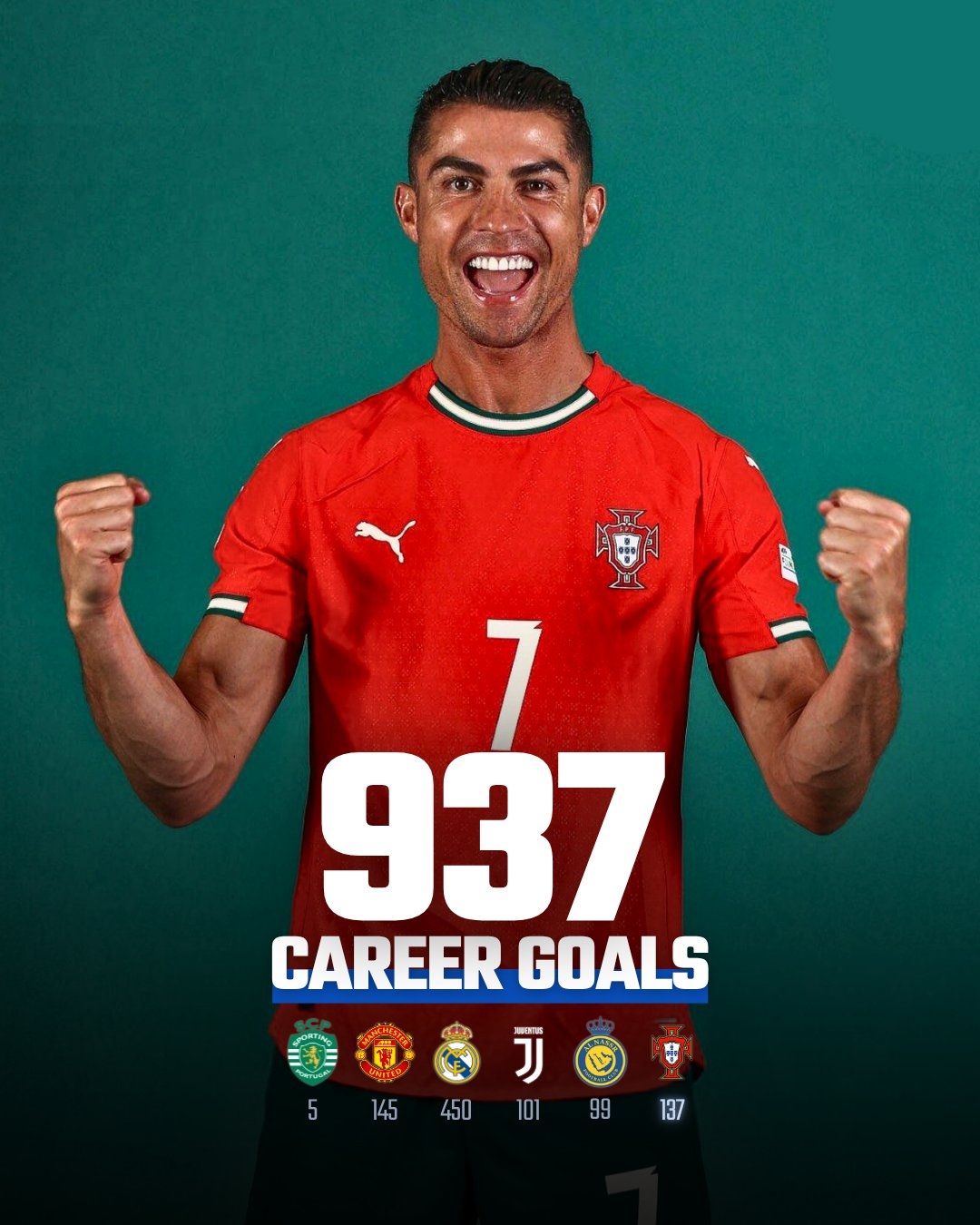 🤩还差63球!C罗1000球大业已完成93.7%,按现效率有望42岁达成