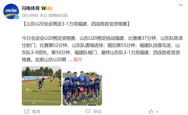 6月5日讯 据山东媒体闪电体育报道,山东U20全运男足四连胜结束资格赛。今日全运会U20男足资格赛,山东U20男足对阵福...
