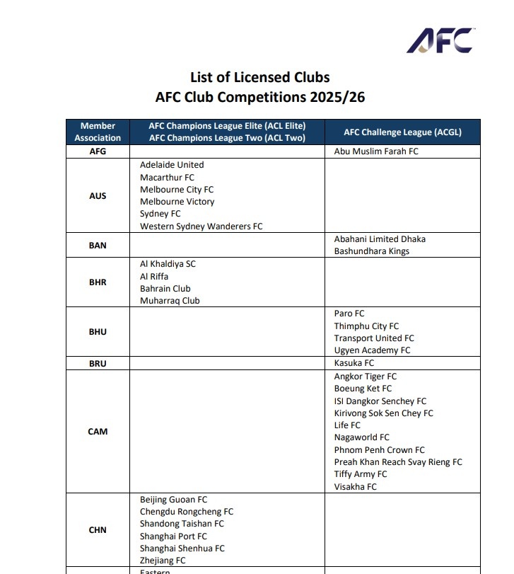 官方:中超6队获25/26赛季亚足联赛事准入牌照,泰山、浙江队在列