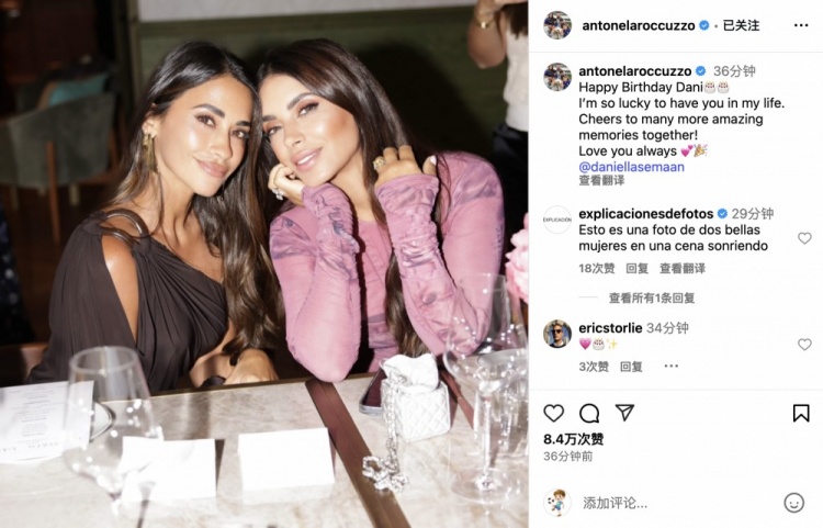 今天是小法妻子生日,安东内拉社媒送祝福:生命中幸运有你相伴