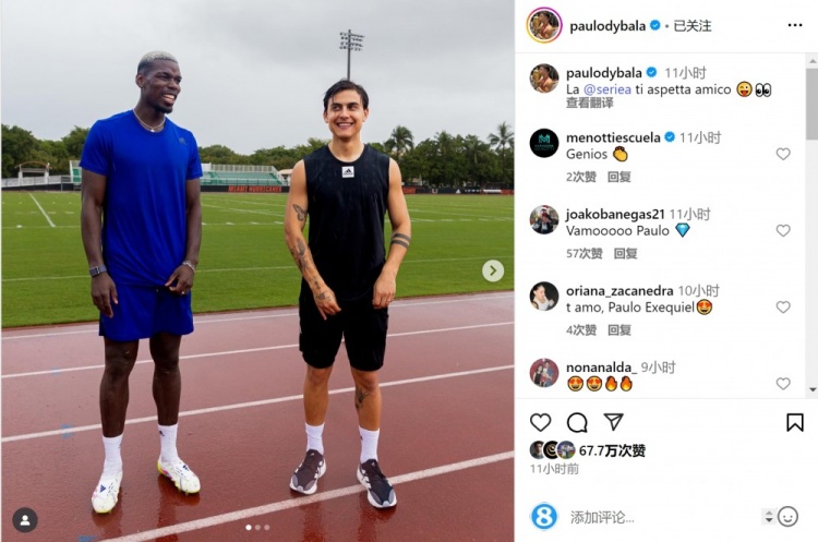 迪巴拉社媒晒与博格巴合照:意甲在等着你,朋友!