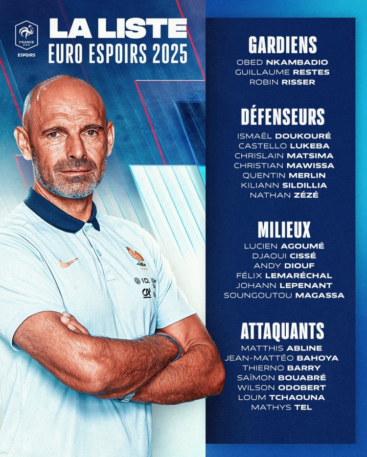 法国U21欧洲杯球员名单:特尔、奥多贝尔、卢克巴在列