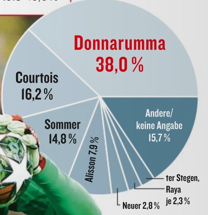 德甲球员选世界最佳门将,多纳鲁马、库尔图瓦、索默分列前三