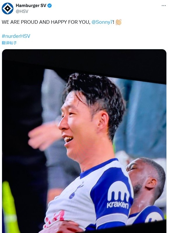 汉堡祝贺孙兴慜夺欧联杯:我们为你骄傲,为你高兴!