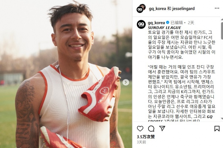 5月29日讯 林加德目前效力于韩K的首尔FC,他在接受《GQ韩国》采访时,谈到了自己的新发型以及养护习惯。林加德:“每...