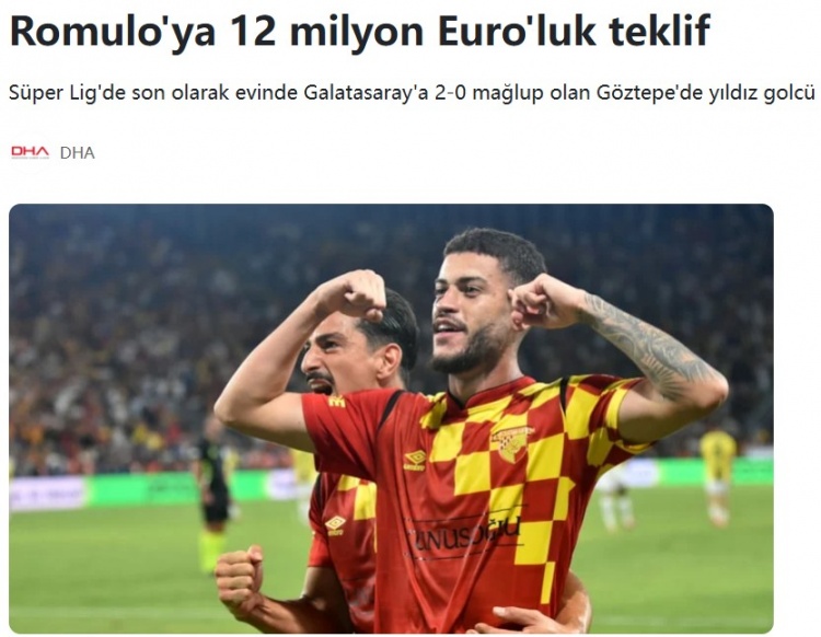 5月26日讯 据土耳其媒体DHA报道称,安德莱赫特1200万欧报价巴西前锋罗慕洛,罗马等队也有意。土超球队哥兹塔比的巴西...