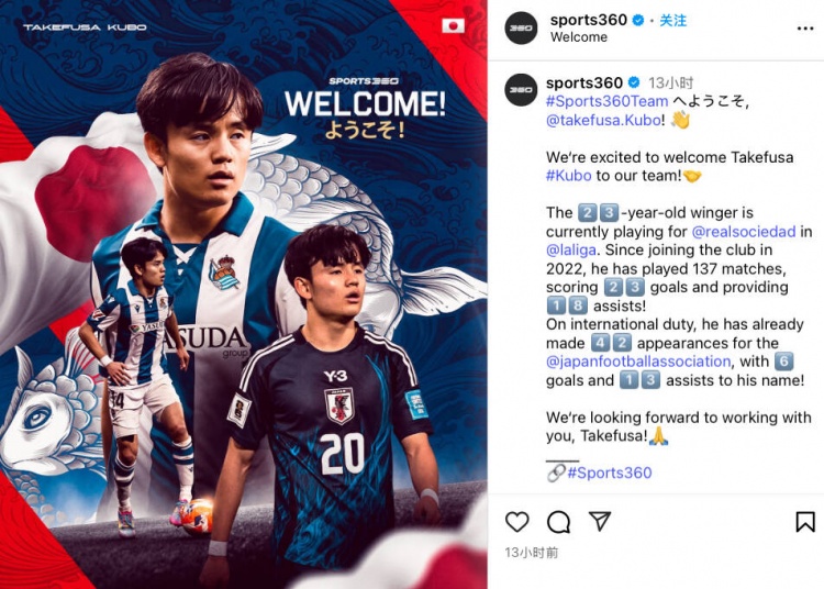 5月27日讯 体育经纪公司Sport360昨晚官方发文,宣布正式与日本球星久保建英达成合作,将代理球员相关事宜。昨日名记...