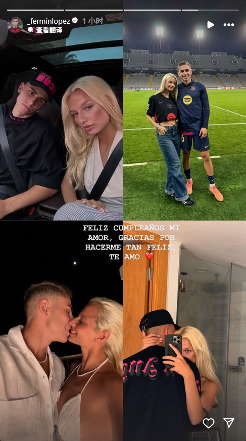 04月15日讯 今天巴萨中场费尔明在社媒上祝女友生日快乐,他写道:亲爱的,生日快乐,感谢你让我如此幸福,我爱你!费尔明的...