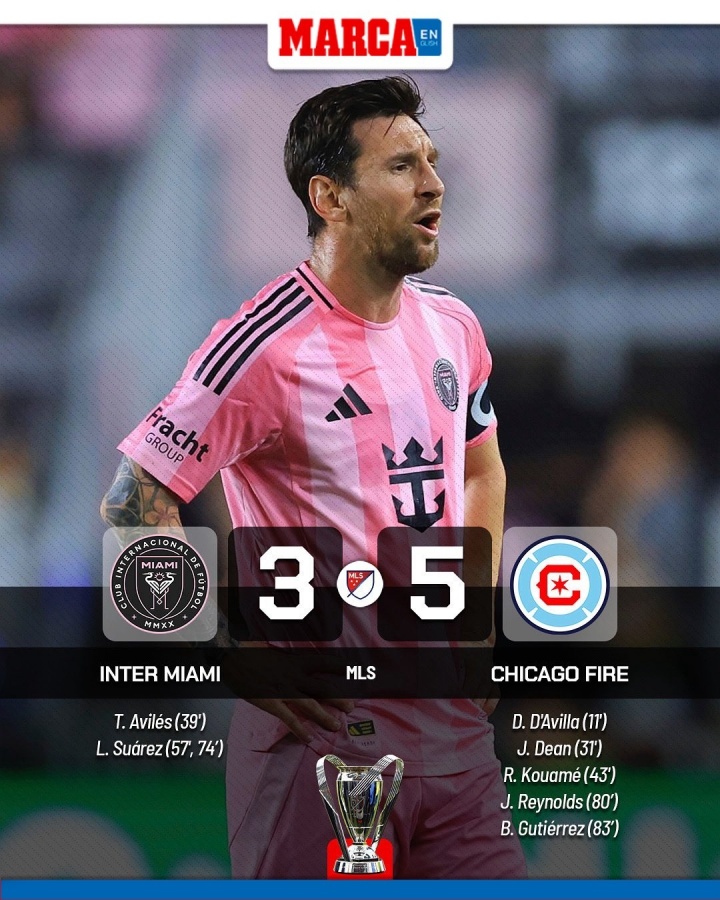 后防低迷!迈阿密3-5芝加哥距榜首7分 梅西抽射中柱苏亚雷斯双响