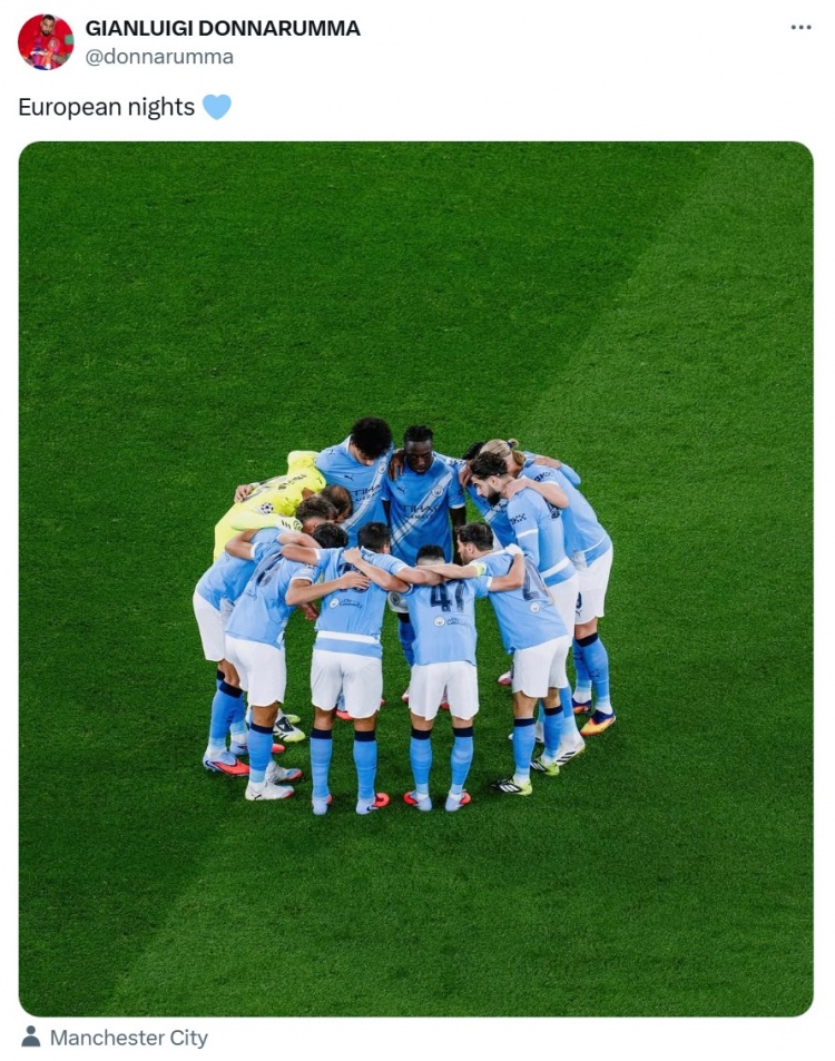 9月19日讯 欧冠联赛阶段第1轮,曼城2-0战胜那不勒斯。赛后,曼城门将多纳鲁马在社交媒体晒图,庆祝球队获胜。多纳鲁马晒...