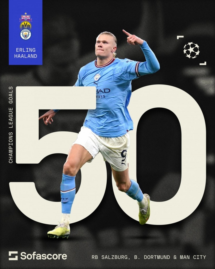 🧙新的里程碑到来!欧冠官方更新海报祝贺哈兰德50球