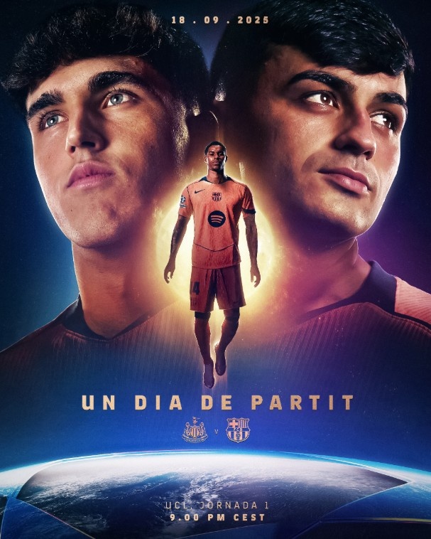 巴萨发布客战纽卡海报:拉什福德重返英格兰,佩德里、库巴西出镜