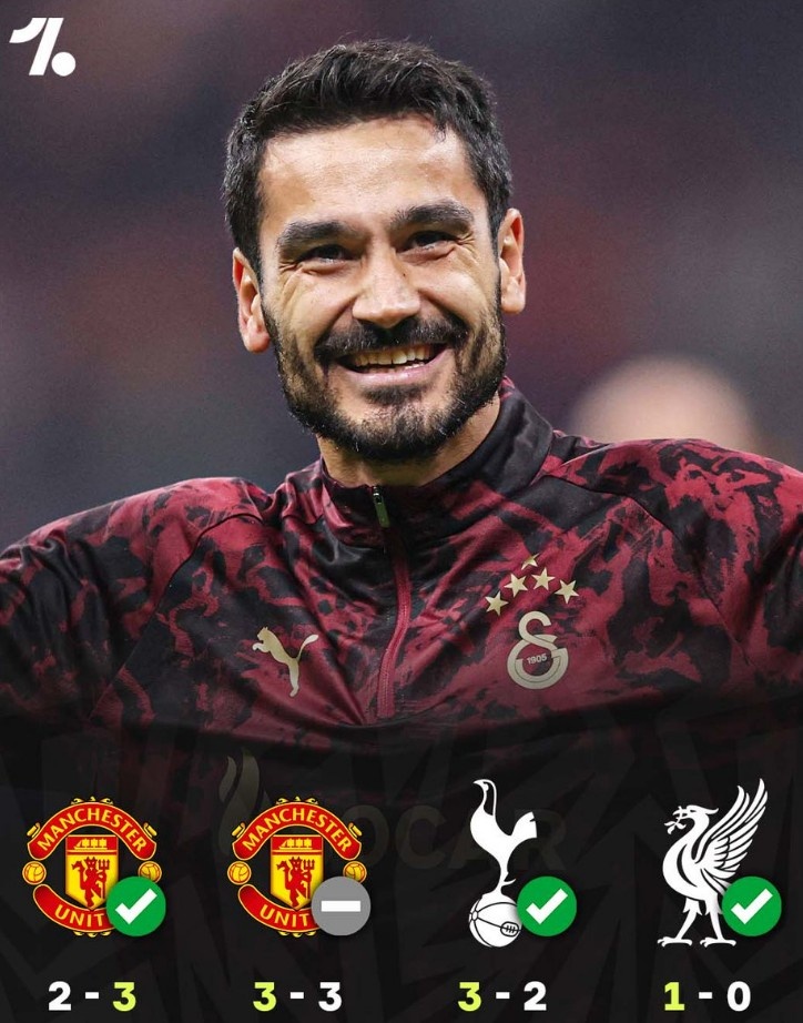 加拉塔萨雷近4场欧战对阵英超球队3胜1平,击败红军、曼联、热刺