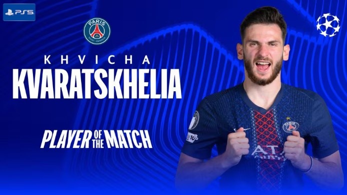 1进球+4关键传球,克瓦拉茨赫利亚当选巴黎4-0亚特兰大全场最佳