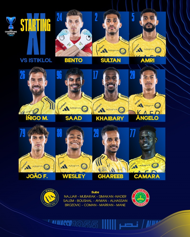 利雅得胜利vs杜尚别独立首发:C罗缺席,马内替补菲利克斯首发