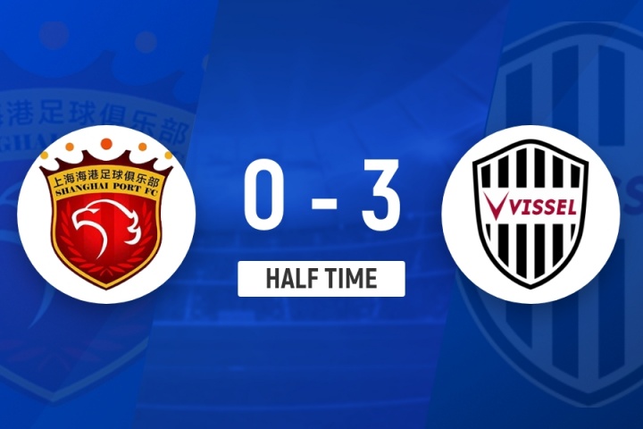 半场-海港暂0-3神户 神户外援埃里克传射 古斯塔沃、李圣龙失良机