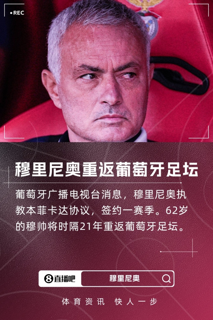 重返葡萄牙足坛!权威葡媒:穆里尼奥执教本菲卡达协议,签约一年