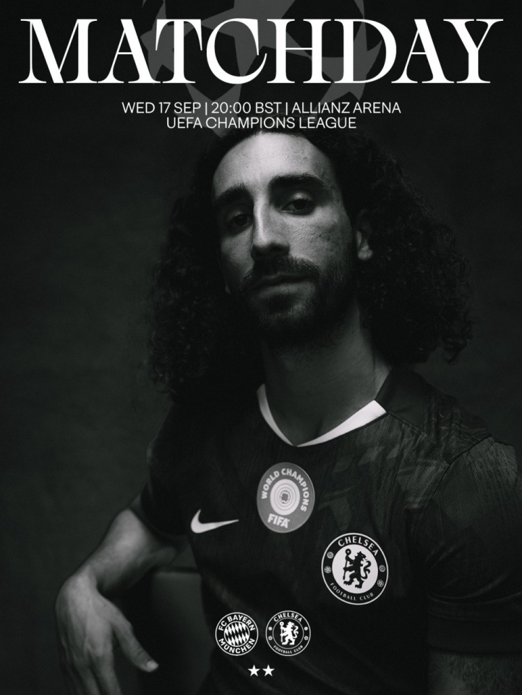 切尔西官方晒欧冠战拜仁海报:库库雷利亚单人出镜