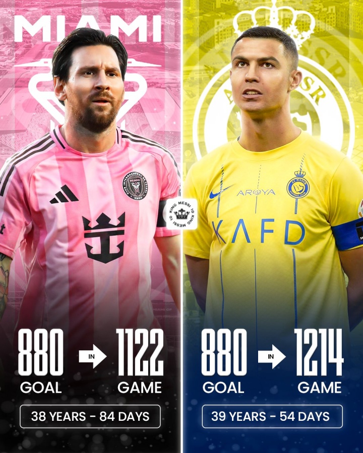 历史最快、最年轻达成!38岁梅西1122场攻入880球,比C罗快92场