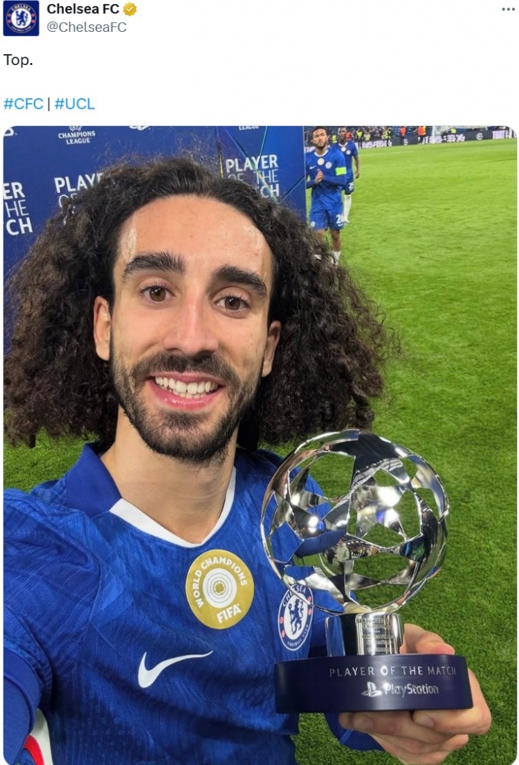 6次抢断,欧冠官方:库库雷利亚当选切尔西1-0本菲卡全场最佳