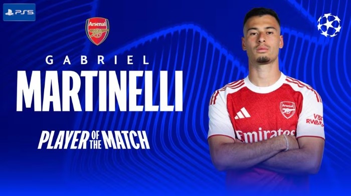 替补登场传射建功,马丁内利当选阿森纳2-0毕尔巴鄂一役全场最佳