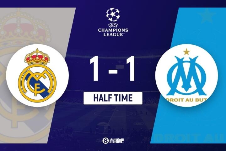 半场-皇马1-1马赛 居勒尔失误致丢球姆巴佩点射阿诺德伤退