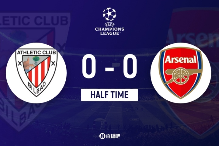 毕尔巴鄂0-0阿森纳半场数据:射门7-4,射正0-1,控球率34%-66%