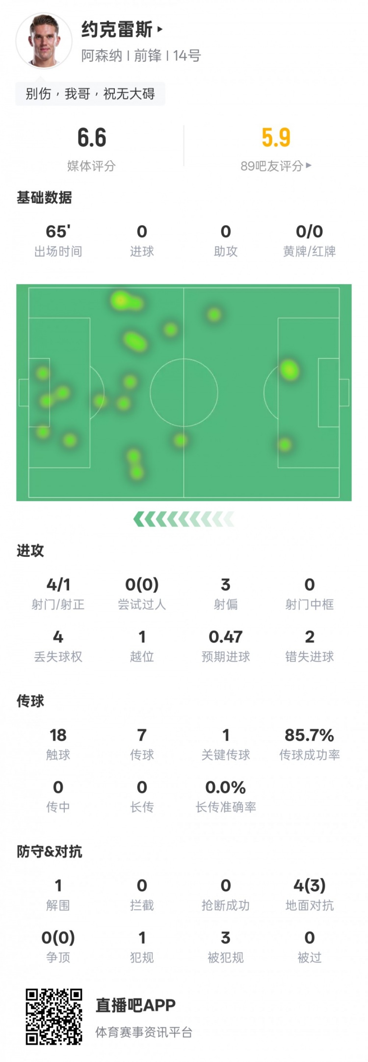 9月17日讯 欧冠联赛阶段第1轮,阿森纳客战毕尔巴鄂竞技,约克雷斯首发出战,4次射门1次射正,送出1次关键传球,2次错失...
