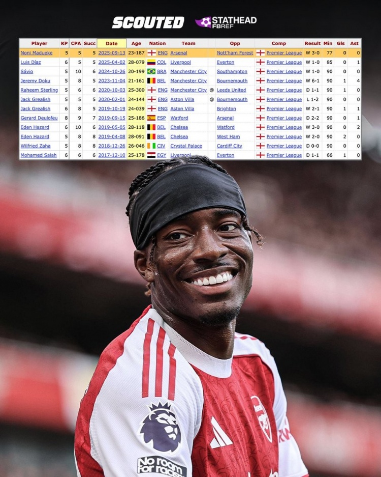 9月16日讯 FBRef统计表明,马杜埃凯是阿森纳首位单场英超5次成功过人、5次带球进入禁区和5次关键传球的球员。自20...