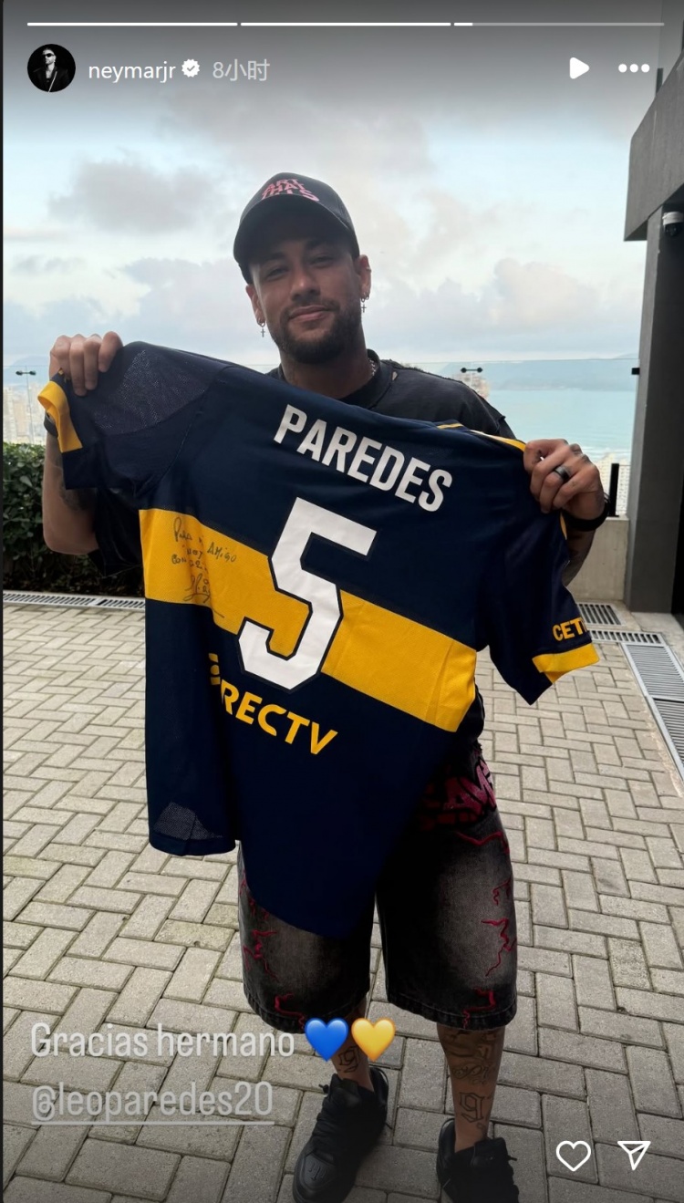 🤝内马尔、帕雷德斯互赠球衣,社媒晒照表示感谢