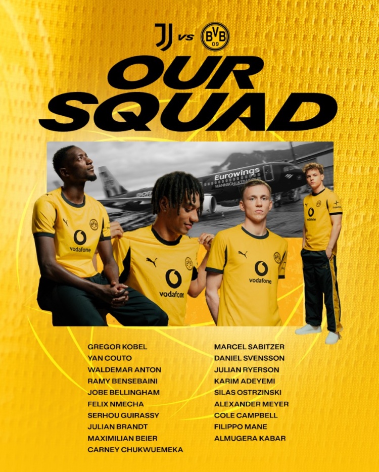 多特客战尤文大名单:小贝林厄姆、萨比策在列,埃姆雷-詹缺阵