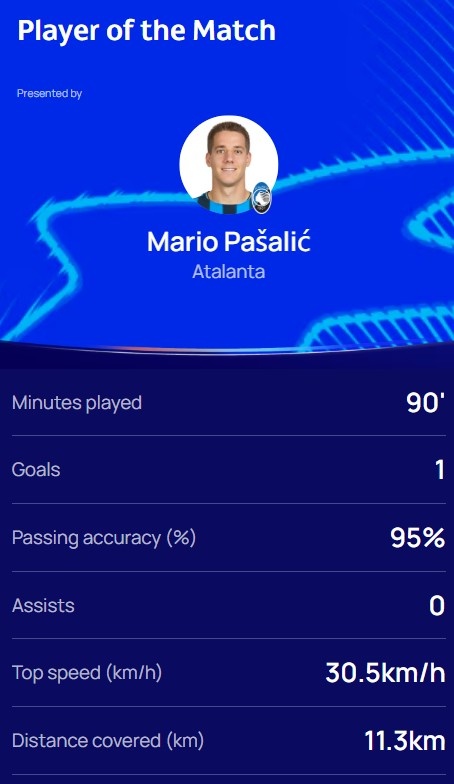 打进绝杀,官方:帕萨利奇当选亚特兰大2-1布鲁日全场最佳